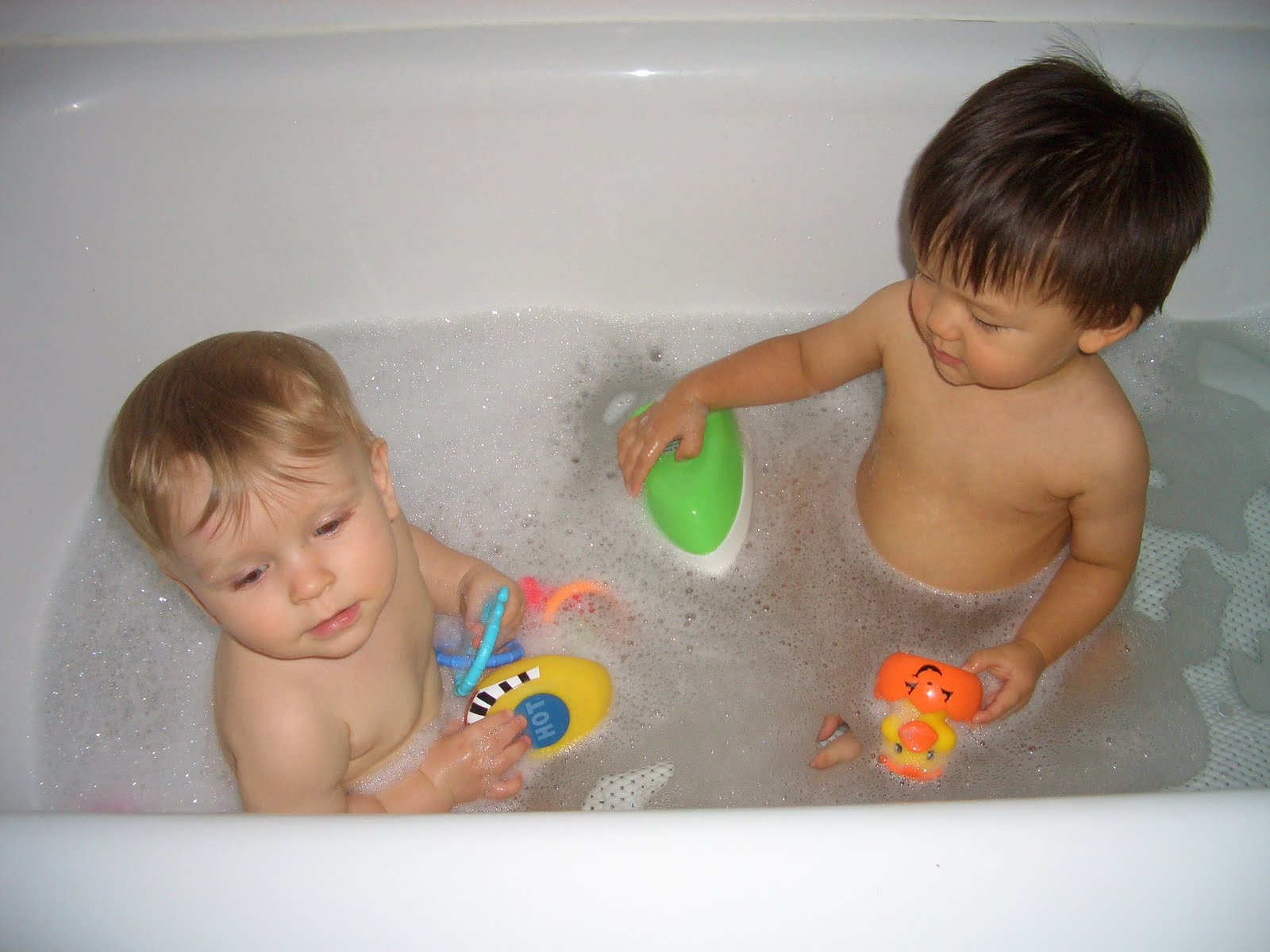And what is a sleepover w/ out taking baths together. There's just something about babies taking baths together that's so cute. !?!